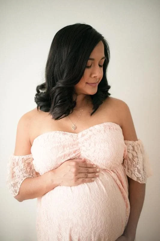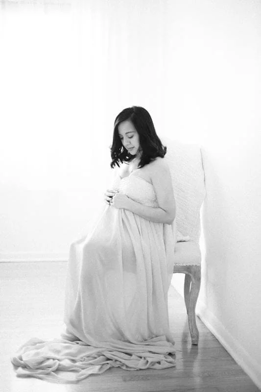 I had been working on gathering a selection of gowns for my expecting mothers, and I had finally a shipment arrive with several of the options I had ordered. I happened to see that a previous client of mine was expecting, and was already 35 weeks along, so I thought this was the perfect opportunity to ask her to model for me. In exchange, she received the photos and I was able to try something new without the risk of surprising a client with something they weren't expecting.